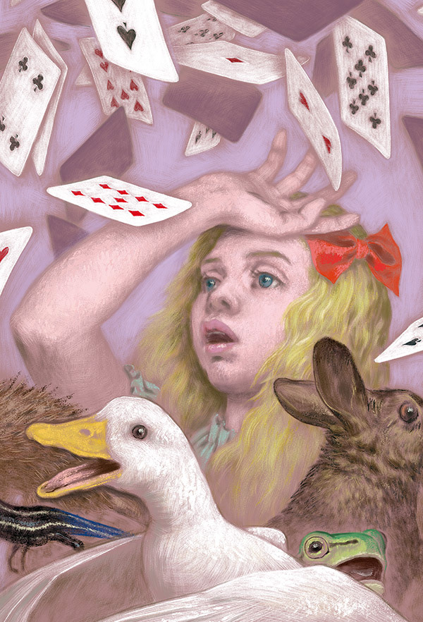 Title : Playing cards falling on Alice
